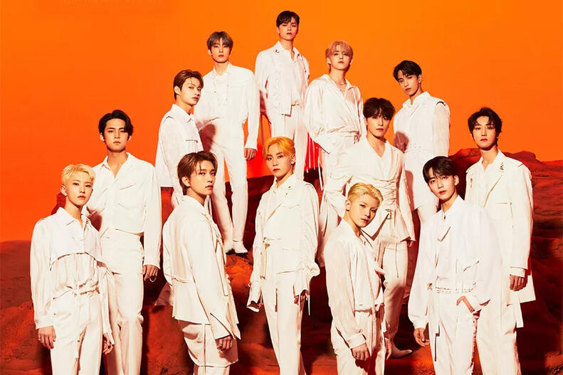 Seventeen (Korean: 세븐틴; stylized in all caps or as SVT) is a South Korean boy band formed by Pledis Entertainment. The group consists of thirteen members: S.Coups, Jeonghan, Joshua, Jun, Hoshi, Wonwoo, Woozi, DK, Mingyu, The8, Seungkwan, Vernon, and Dino